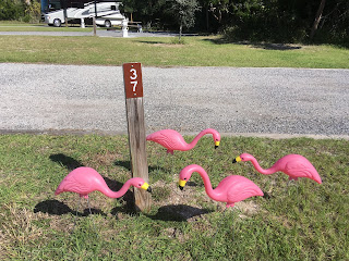 Hi Folks! It's me, Toaster the road warrior. I'm already a tad bit behind on posting during our travels, but the photos wouldn't download while we were at O'Leno State Park. So now that we're in a place with better internet reception (more on that during my next post), I'll get caught up. I was given strict instructions before we left home that I was supposed to not get behind on my blog posts, but I can't help it if technology doesn't always cooperate. We were at O'Leno for just two nights, so Gary didn't set me up with all the frills like he does when we stay somewhere for three days or longer. I got my power and TV antenna hooked up, my step put out next to my door, and my porch light attached. No stabilizer jacks, no water hook-up, no tablecloth, no pink flamingos, no "Serra" (my little metal Scottish Terrier). TV reception was perfect. Gary and I watched the NASCAR Championship race from Miami-Homestead, and then Sunday Night Football. We were in campsite number 5 for our stay, and it is directly across the street from the restrooms, which Gary says are VERY nice. The campsite wasn't perfectly level, but close enough for us. Gary scoped out campsite number 4, and he thinks it's a little better. We will try to stay there on our next visit. It was nice and quiet during both nights, and we all slept well. On our second and final day, Gary and Dodge went to the HUGE Webb's Antique Mall. It's just a few miles away from the park, and that was one of the deciding factors for our stay at O'Leno. We never pass Webb's that we don't stop. As usual, I hung out at the park, fed the squirrels, and greeted all the people that pass by and stare at me. From Webb's, Gary and Dodge drove all the way home (about 170 miles round trip). While there, all of the purchases made at the car show in Georgia were dropped off, as well as all the purchases made at Webb's. Gary also washed a load of laundry, and unloaded the warm clothes he brought for our stay at Reed Bingham State Park in Georgia. In Florida, warm clothes are seldom necessary, and our next stop would be a five night stay in Flagler Beach (again, more on that during my next post). He also brought back my air conditioner just in case we may need it during our Florida camping. There wasn't any point in carrying it to Georgia with us, since temperatures never got higher than the mid 60's, and got down as low as 35. As we left O'Leno, it was raining lightly. That kept up until we got down to Ocala. I'm not thrilled with traveling in the rain, but at the same time, I was anxiously awaiting the next stop on this round of camping. Like dealing with working or non-working technology, we can't do anything about the weather. I'll write more soon, no doubt about it!